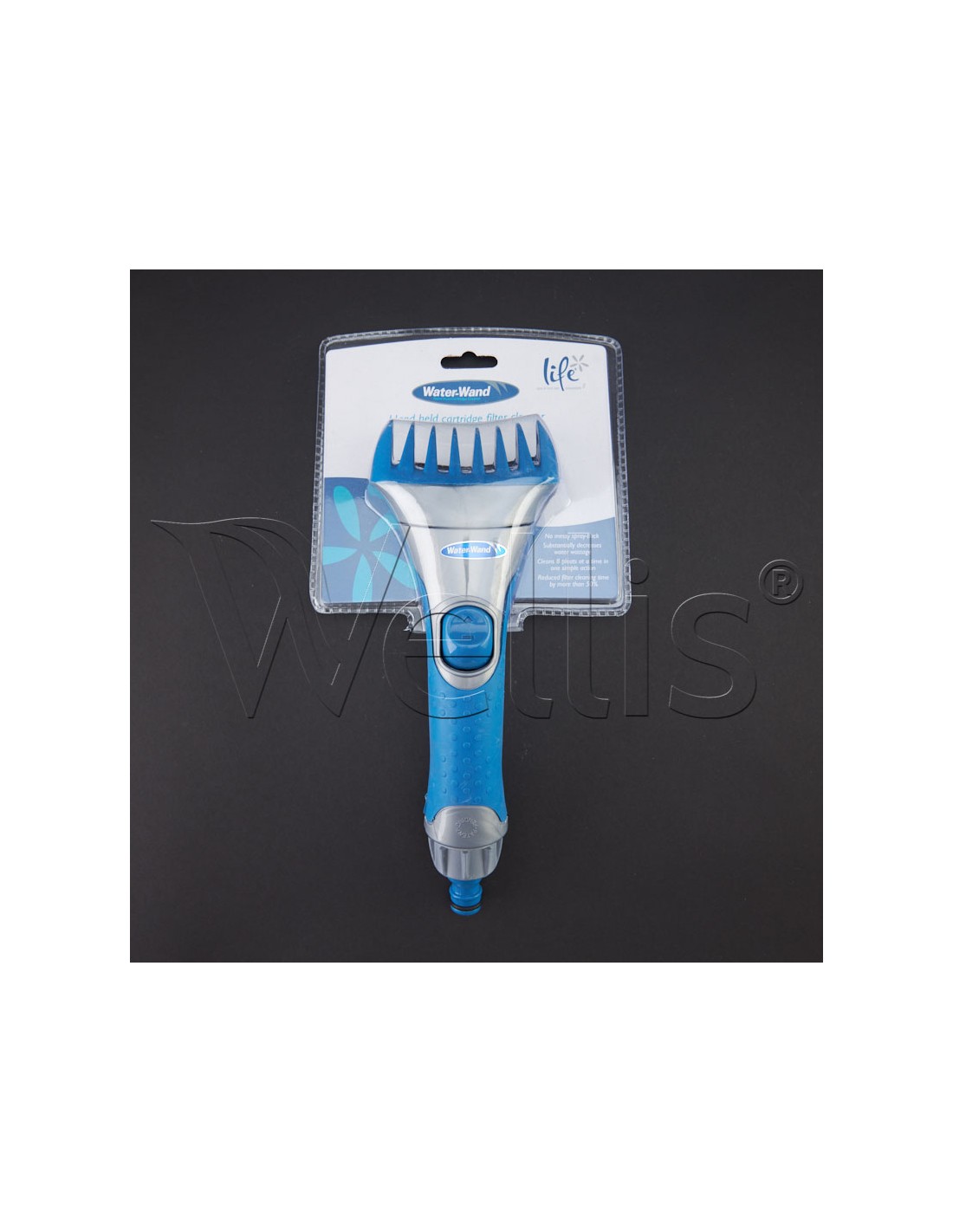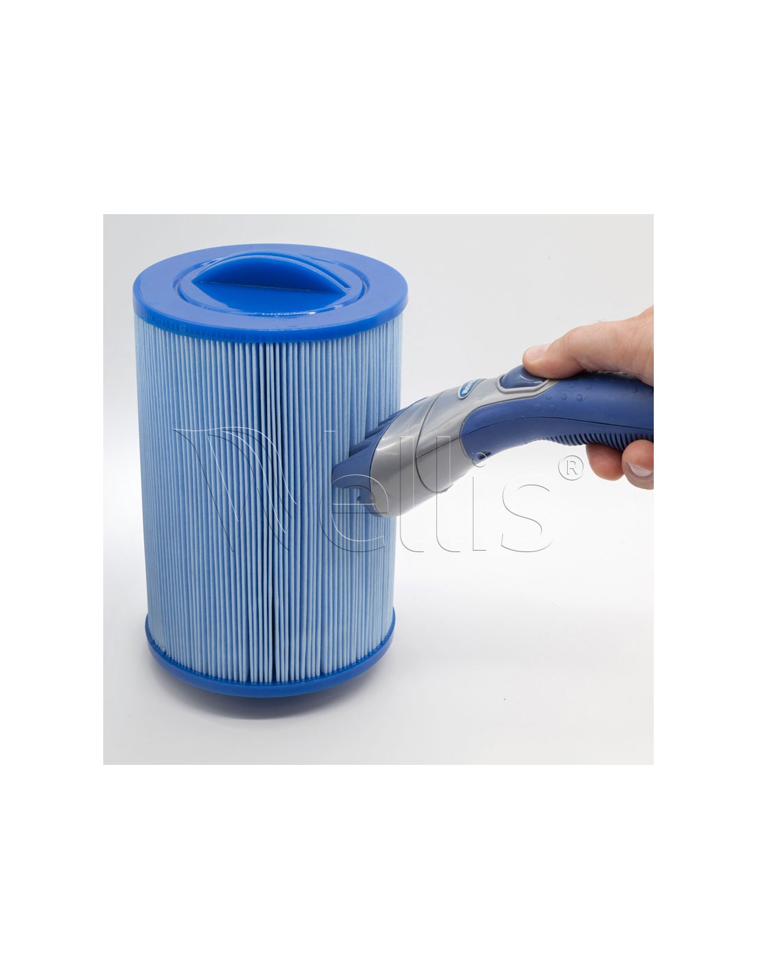 Dedykowane urządzenie do manualnego czyszczenia filtrów kartuszowych różnego typu. Umożliwia bardzo prosty i szybki sposób wyczyszczenia wkładu filtrującego. Posiada wejście do podłączenia węża ogrodowego, a przycisk przesuwny uruchamia przepływ wody. Siła przepływającego strumienia pozwala usunąć zanieczyszczenia ze szczelin filtra. Szczotka do czyszczenia filtrów jest niezbędnym narzędziem każdego posiadacza wanny spa.
